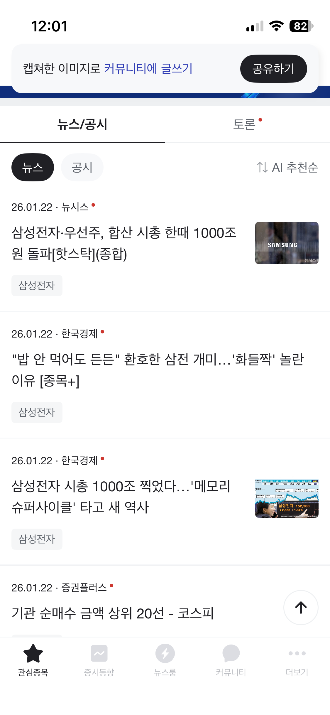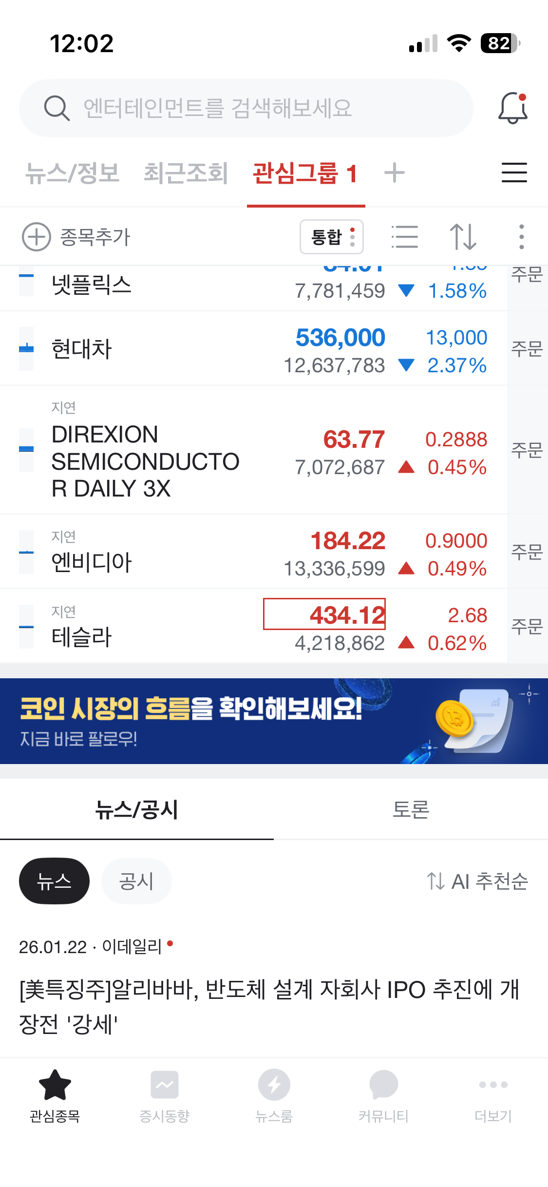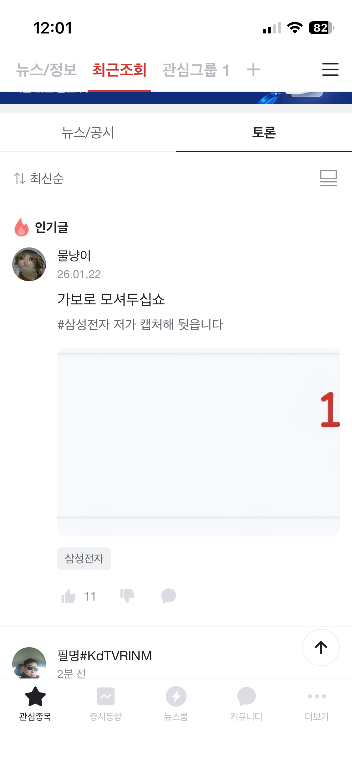 최근조회 종목 리스트 관심그룹 종목 리스트 뉴스/공시 토론방 국내외 구분 없음