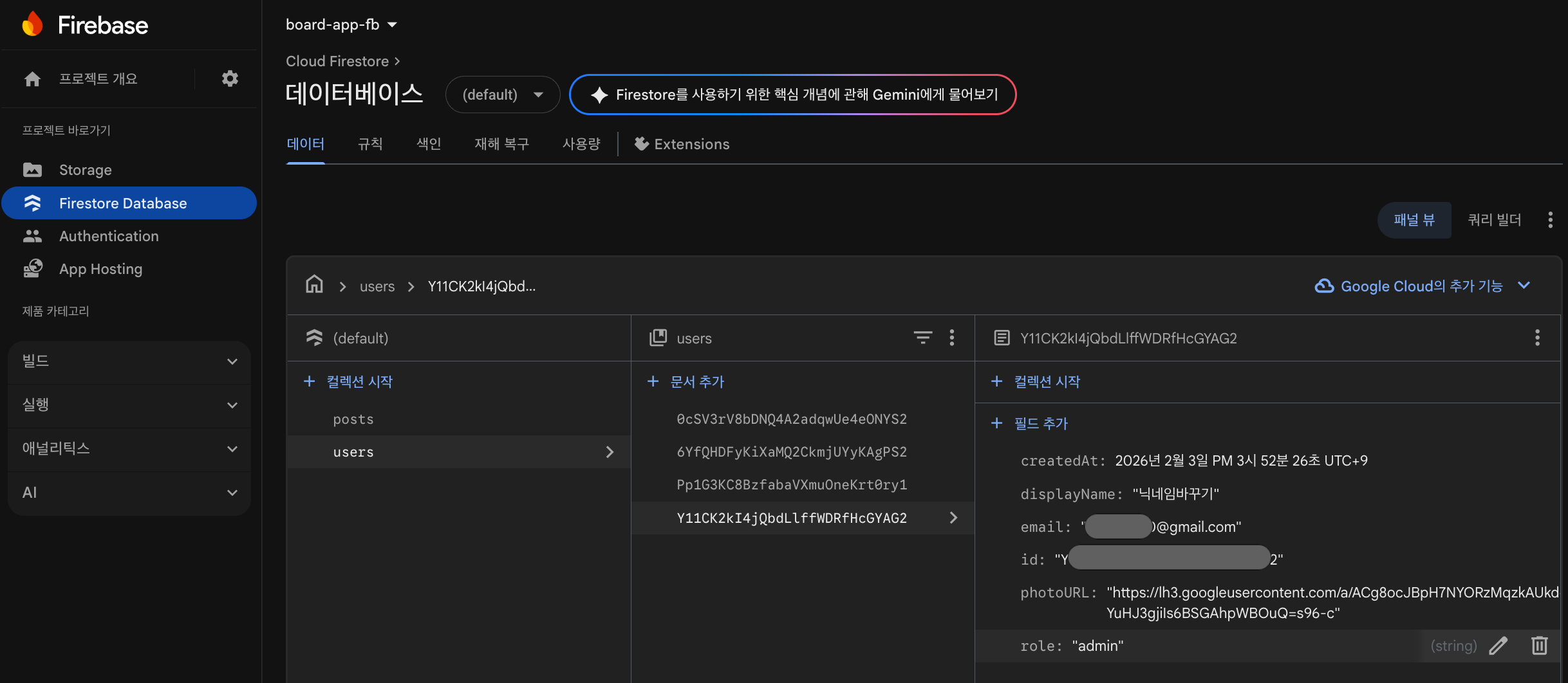 users 테이블에서 해당 사용자의 role 이 "Admin"으로 적용된 것을 확인하였습니다.