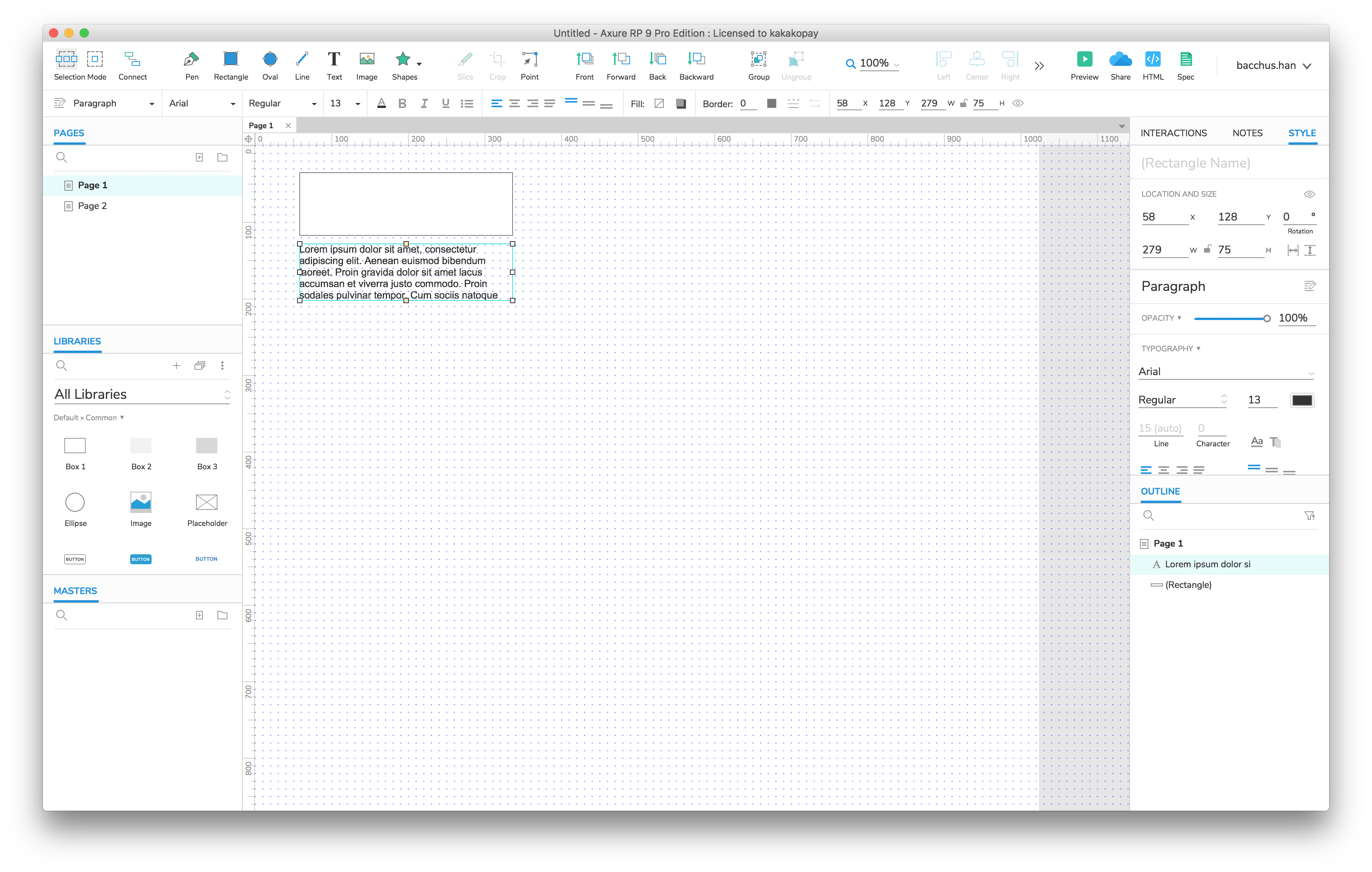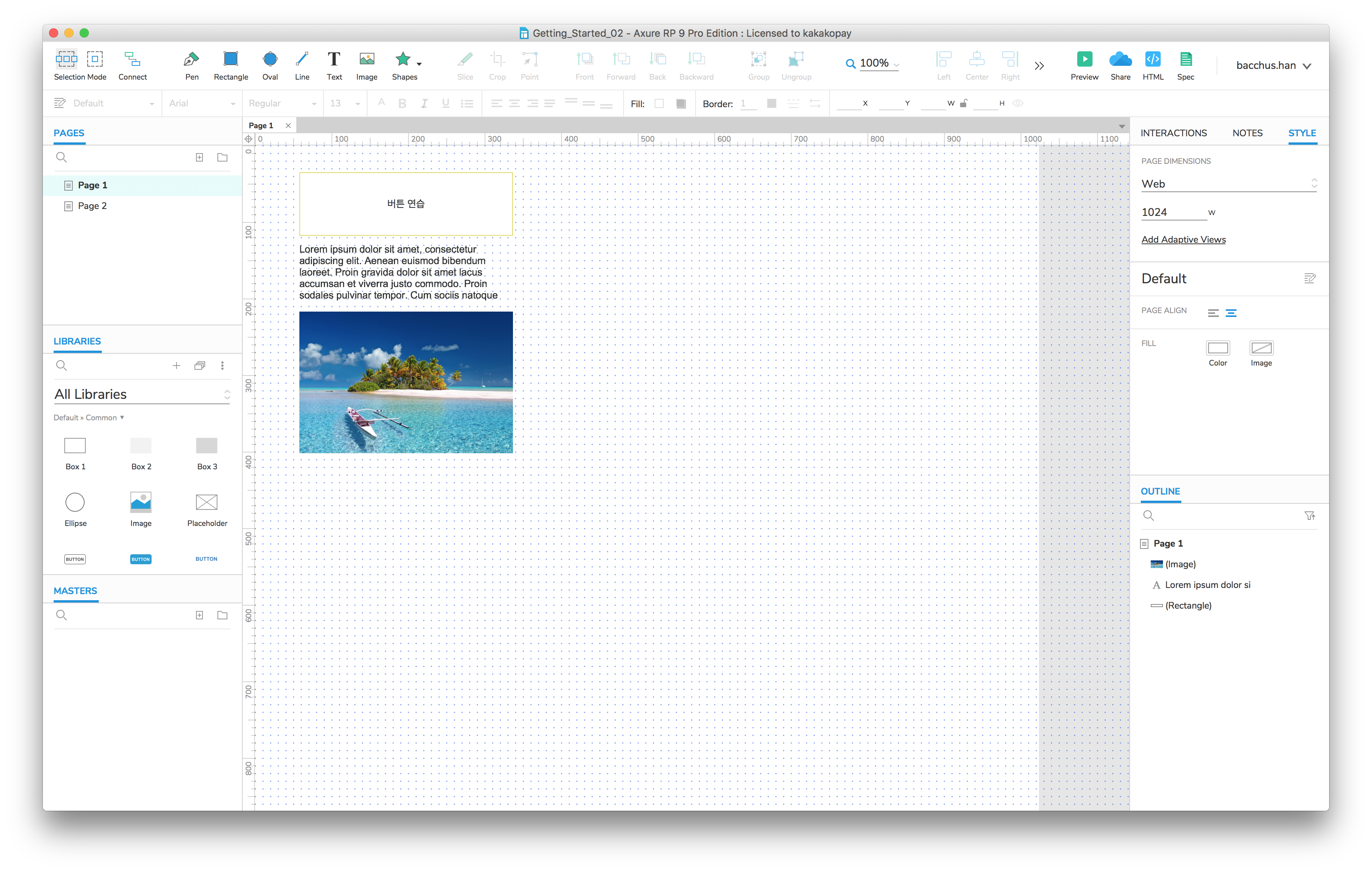지금까지 Axure의 기본적인 사용 방법을 알아보았습니다. 다음에는 간단한 Interaction을 추가해보겠습니다.