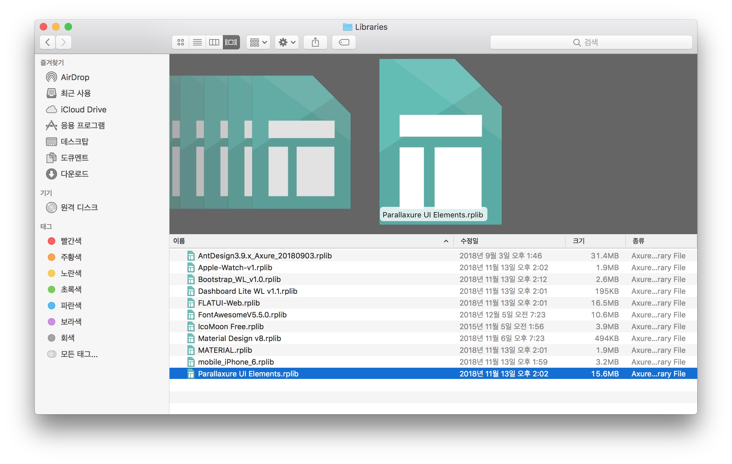 다운로드 받은 후 해당 파일을 Axure가 설치된 폴더 안의 libraries 폴더로 이동하고 Axure를 다시 실행합니다.
