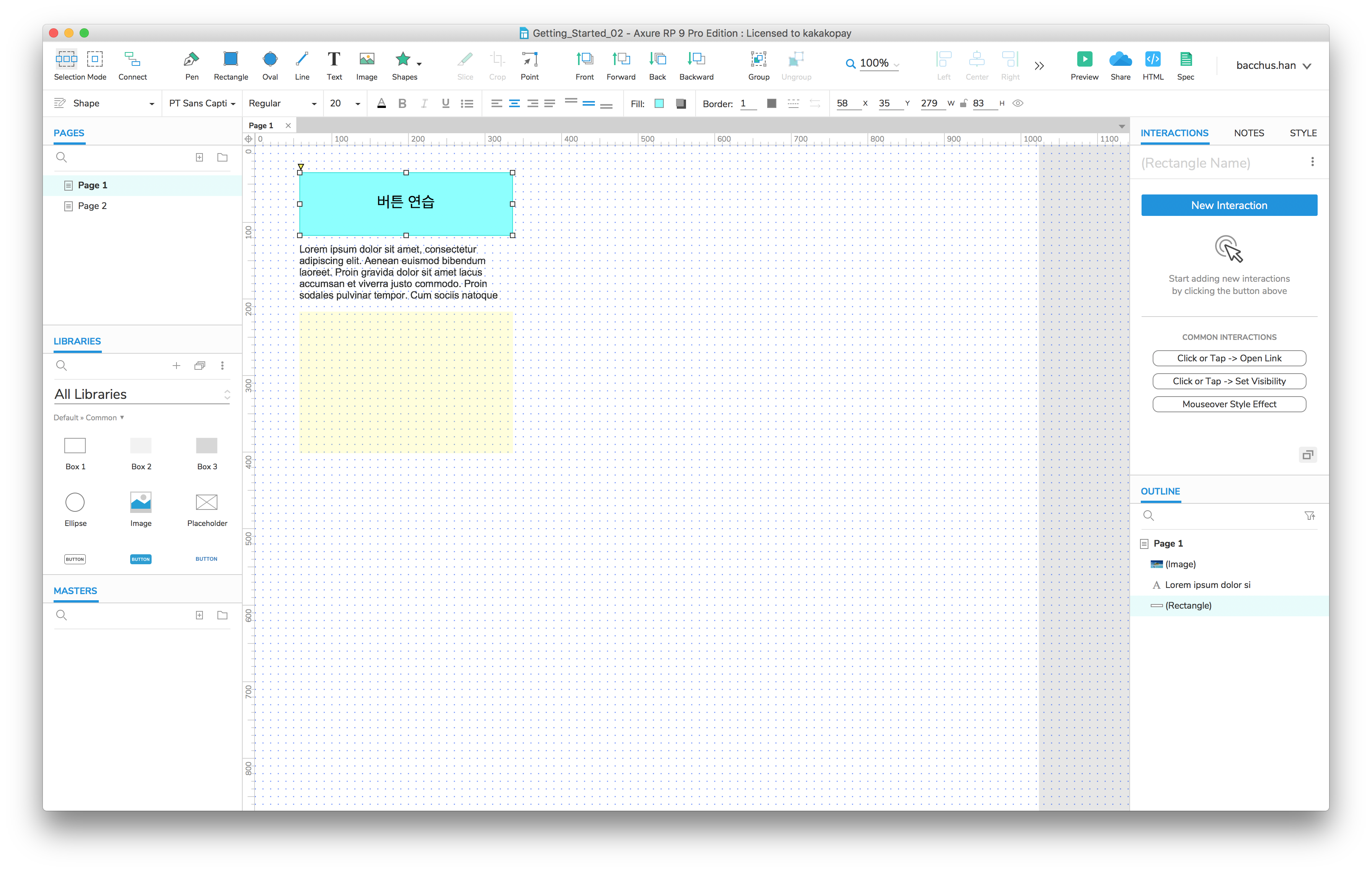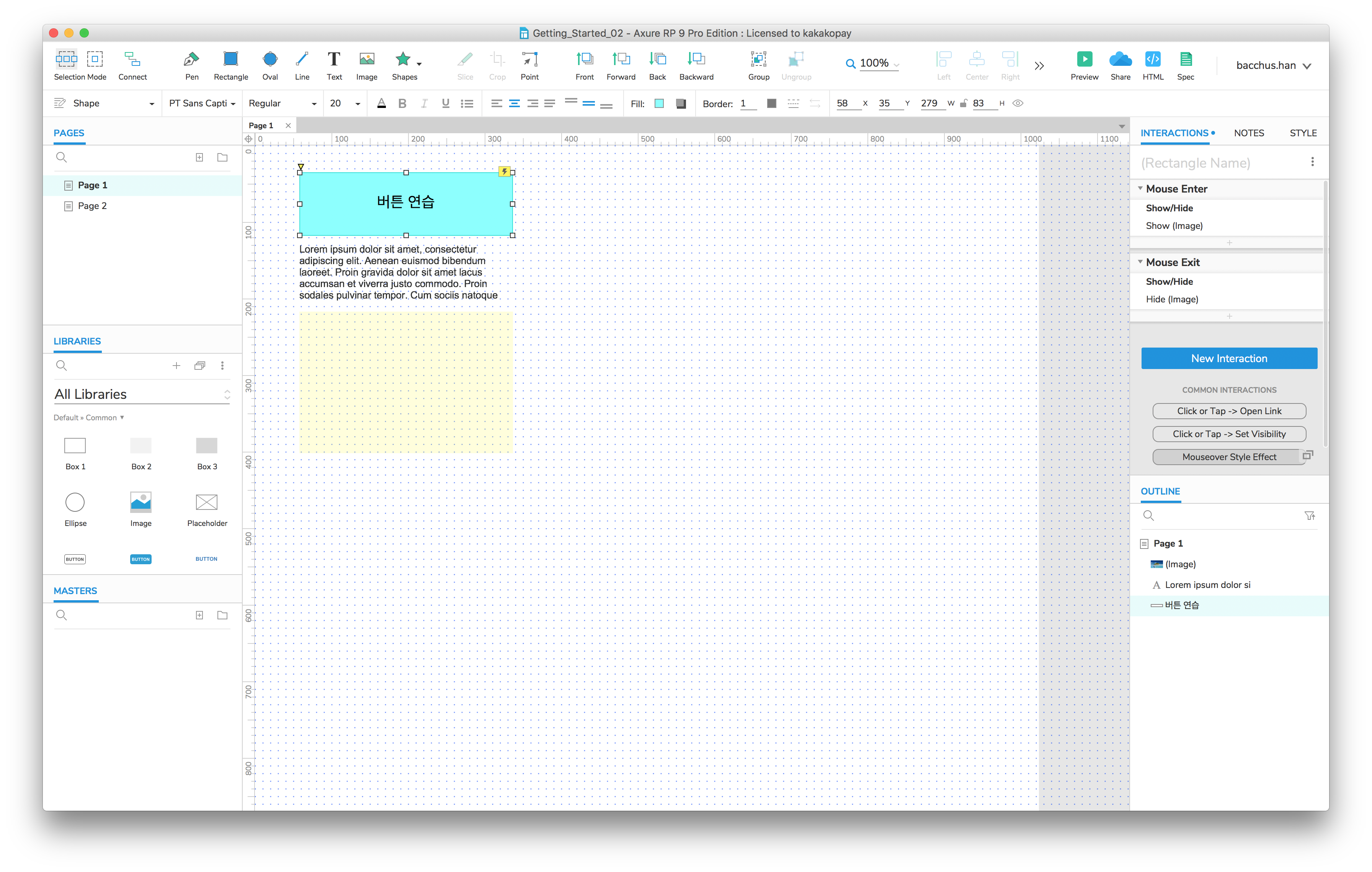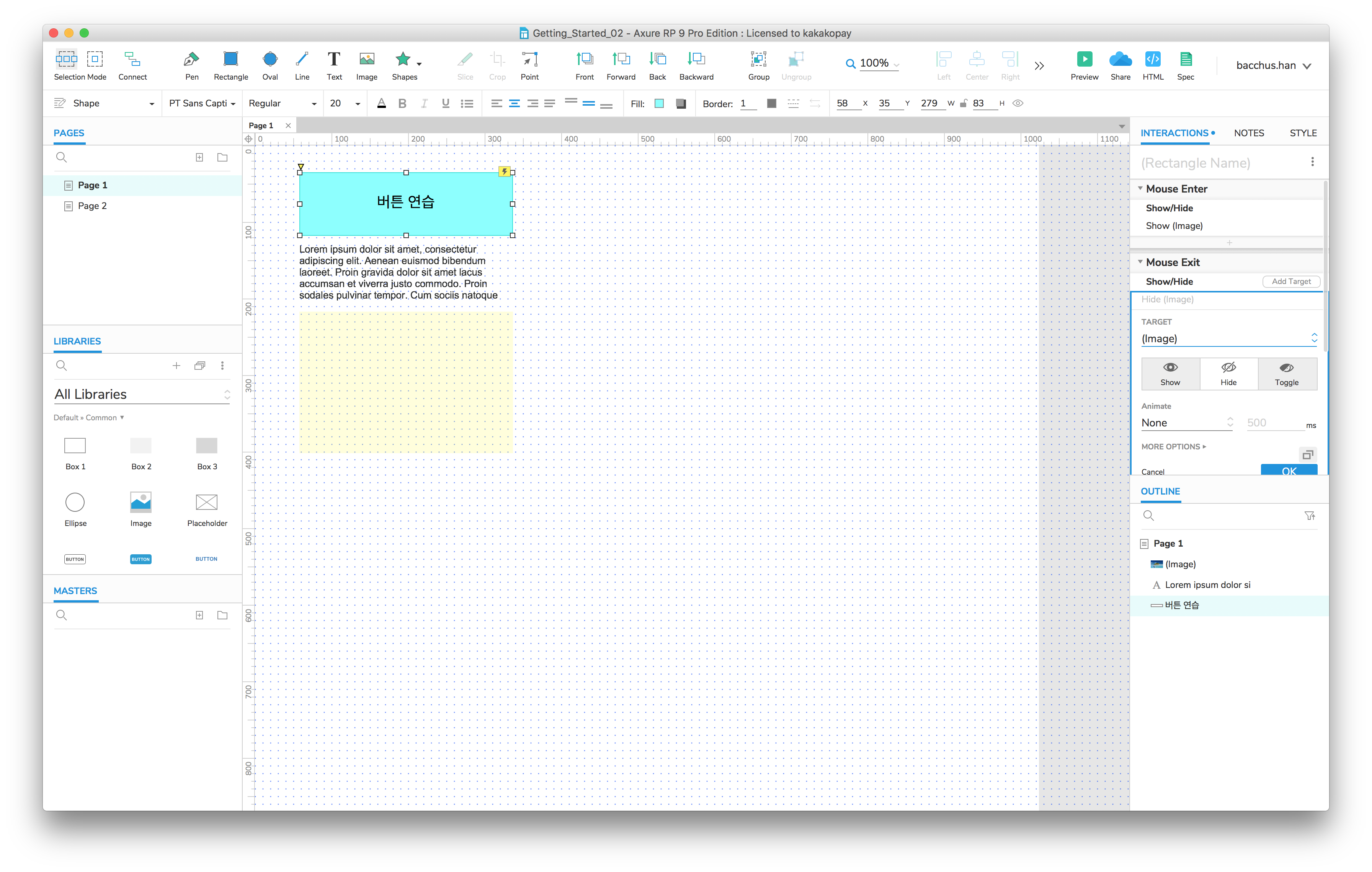 지금까지 Axure의 기본적인 사용 방법을 알아보았습니다. 다음에는 조금 더 유용한 Interaction을 추가해보겠습니다.
