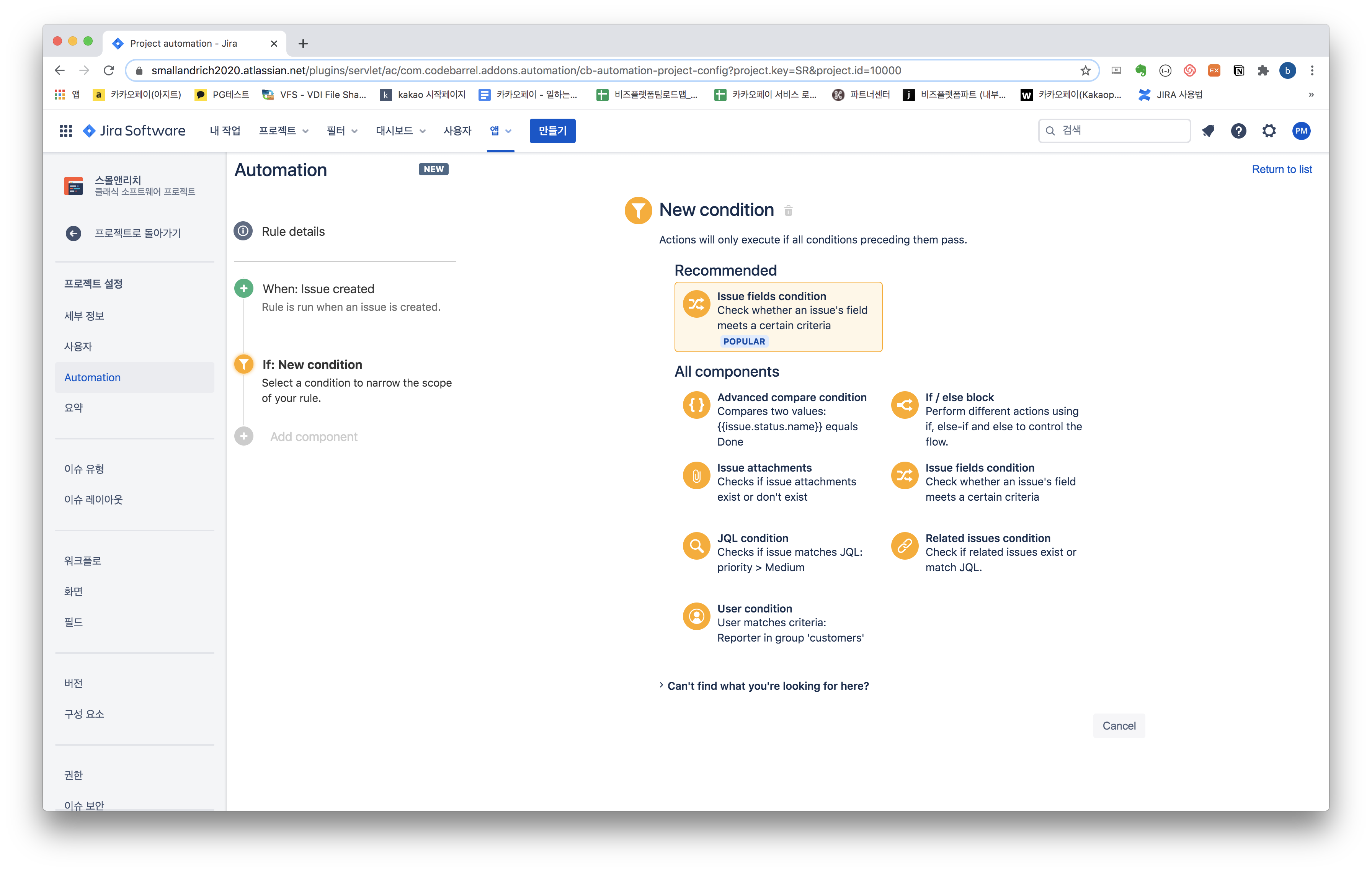 보통 이슈 등록자들이 여러명인데, 관리에 필요한 값들을 잘 넣지 않는 경우가 종종 발생합니다. 이 경우에 등록자가에 아무리 이야기해서 해결이 되면 좋겠지만 계속 실수가 발생하고 관리포인트가 증가하는 경험을 갖게 됩니다. 그래서 아예 자동화(Automation) 규칙을 설정해 놓으면 이러한 낭비스러운 운영업무를 제거할 수 있게 됩니다. (Fast operation -> NoOps)