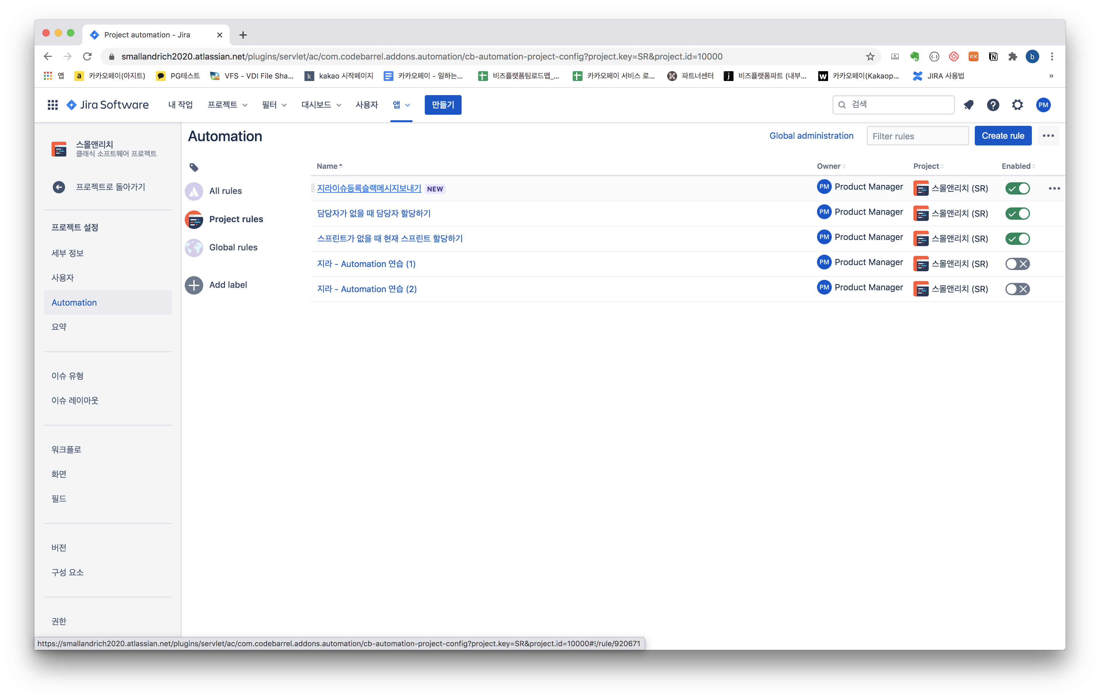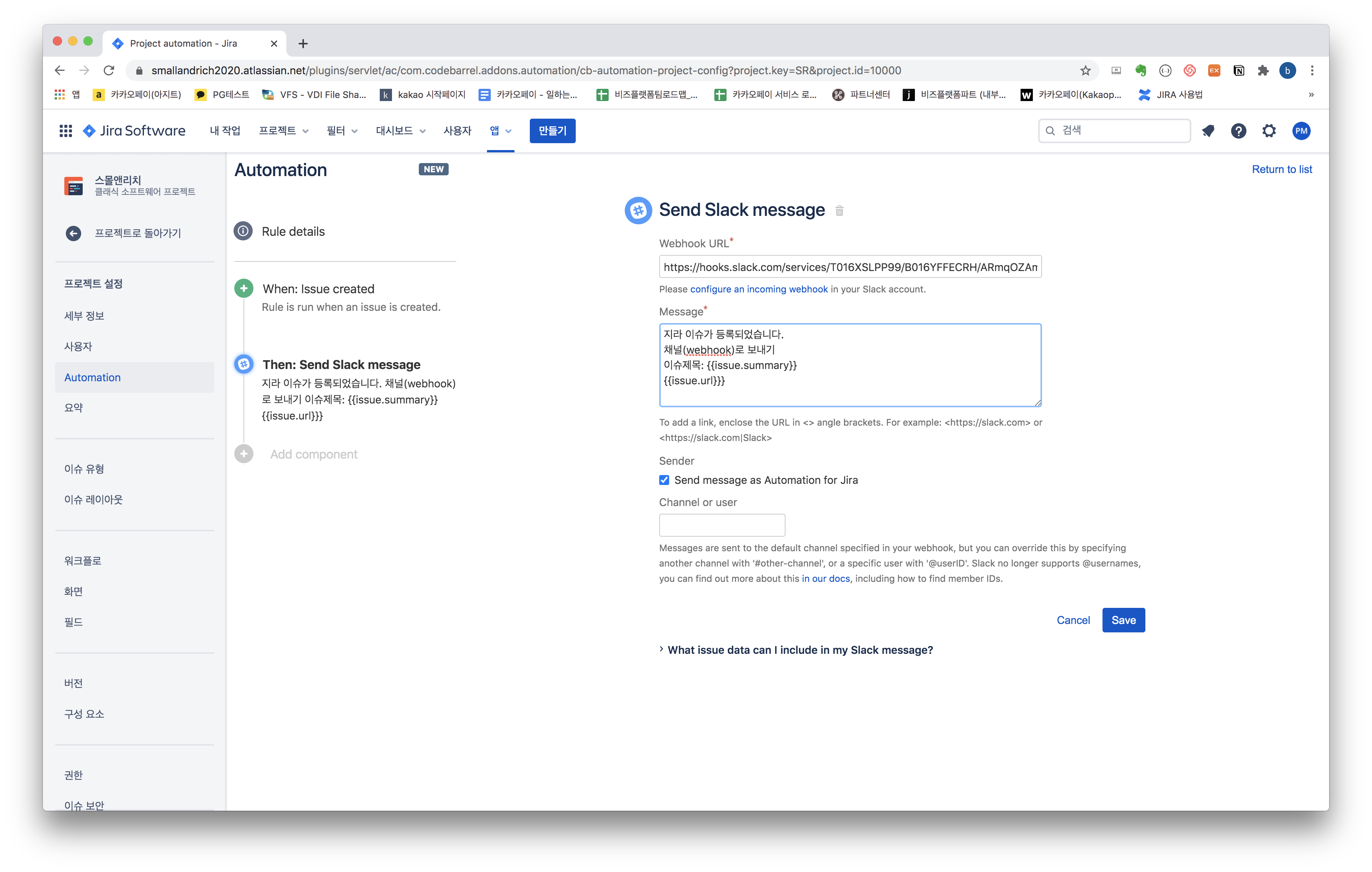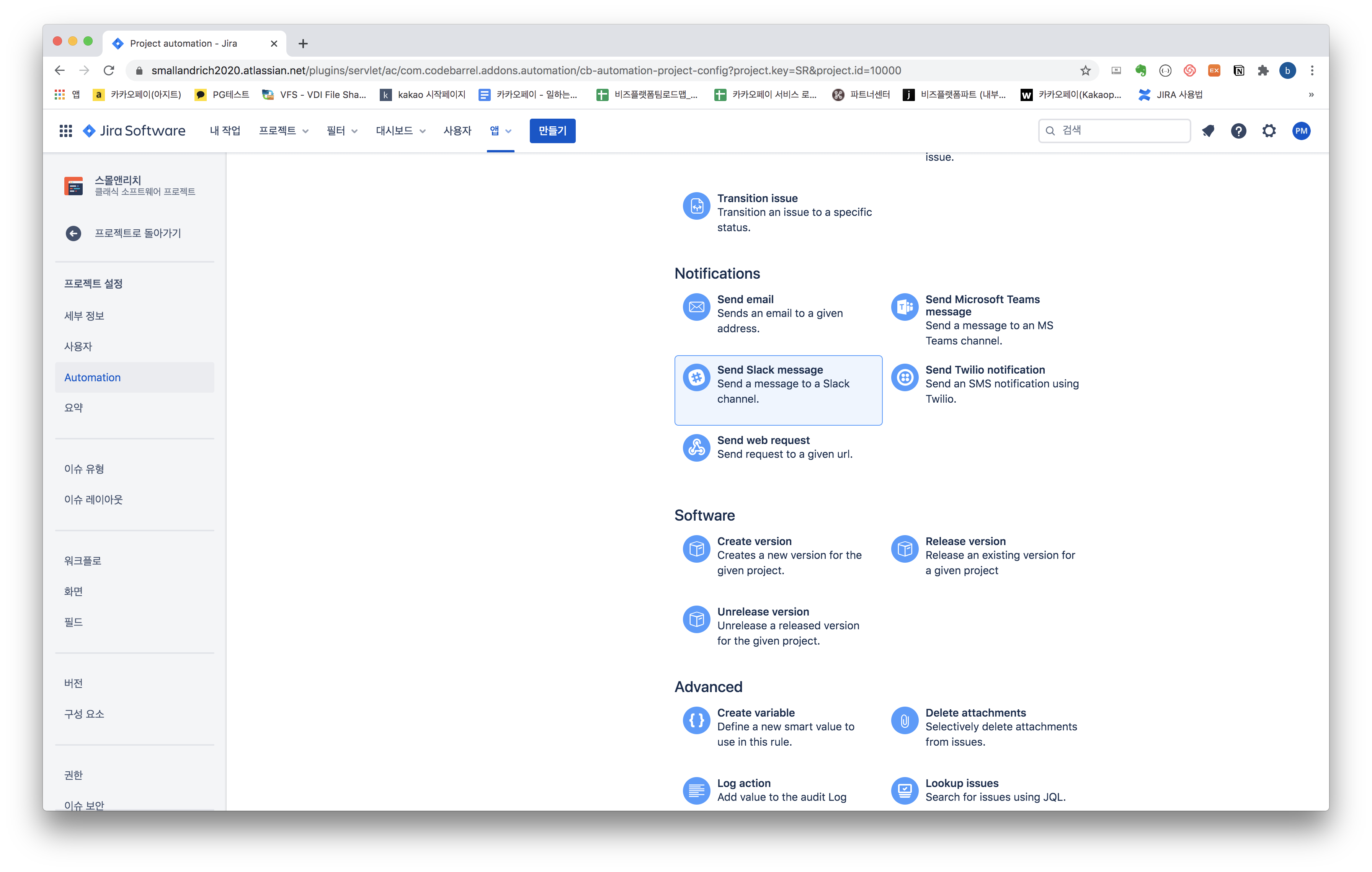 자! 이제 완성된 지라에서 슬랙메시지 자동화 설정을 확인해봅니다.