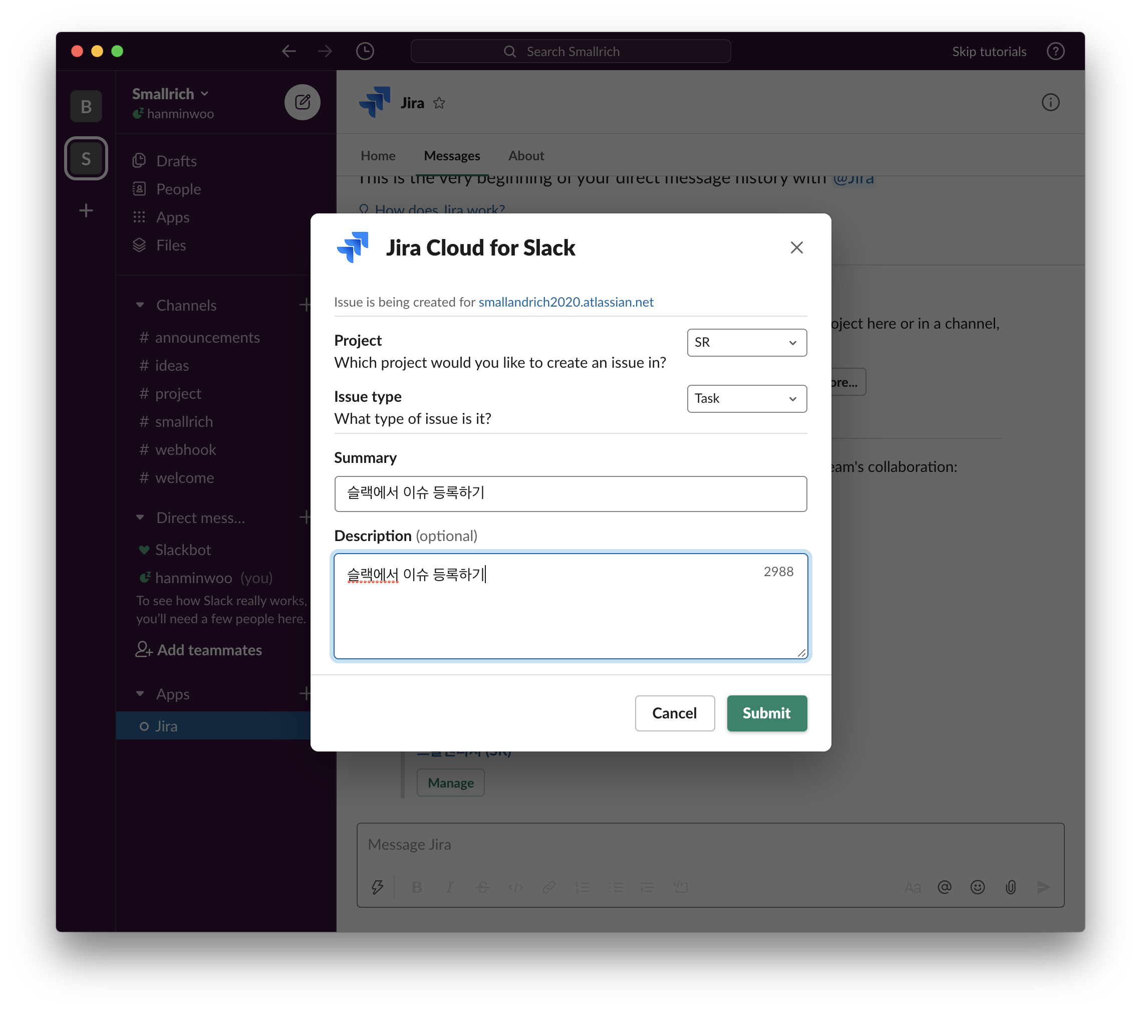- 슬랙(Slack)에서 지라(JIRA) 이슈 등록하기