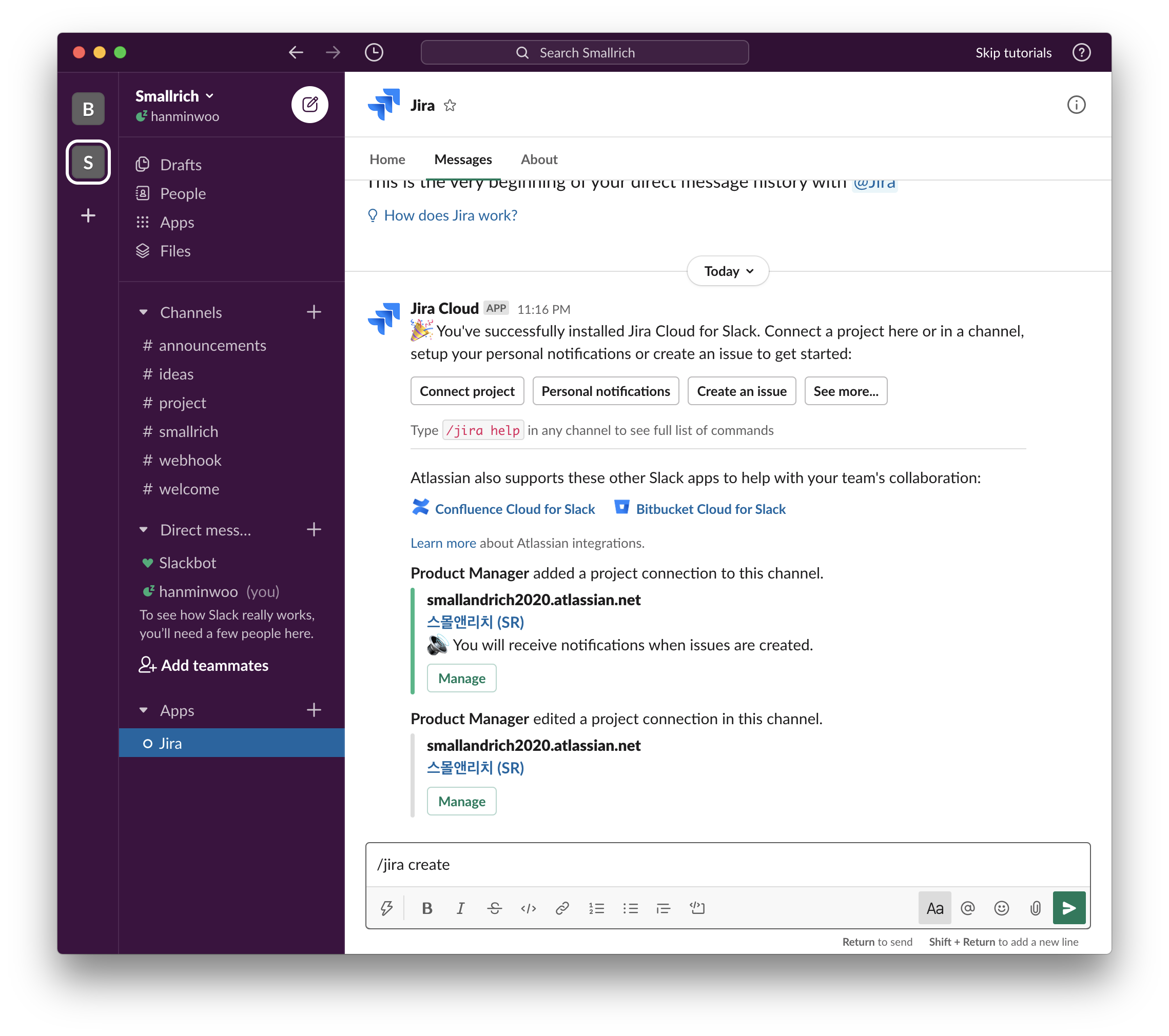 - 슬랙(Slack)에서 지라(JIRA) project 연결