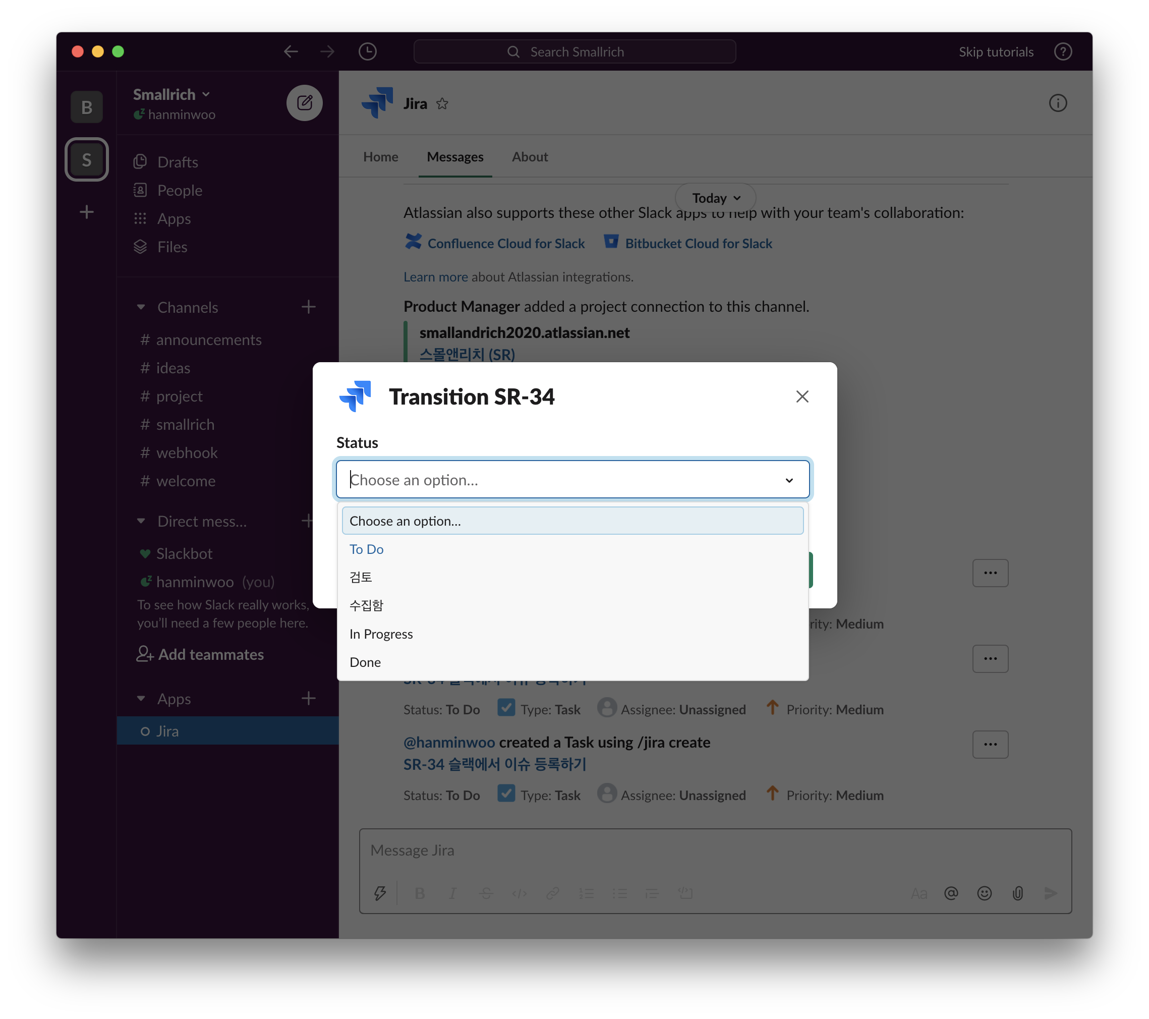 - 슬랙(Slack)에서 지라(JIRA) 이슈 상태 변경하기