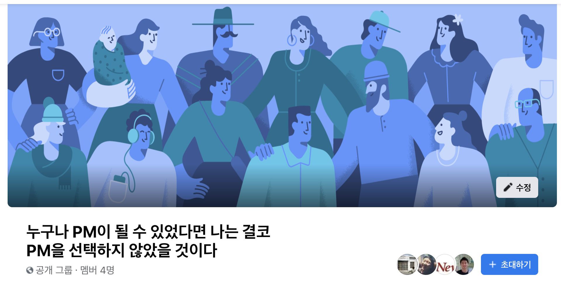 누구나 PM이 될 수 있었다면 나는 결코 PM을 선택하지 않았을 것이다에 멤버 4명이 있습니다. Product Management 정보 교류 및 학습을 위한 그룹입니다. Product Manager 들을 위한 유용한 온라인 공간이 되