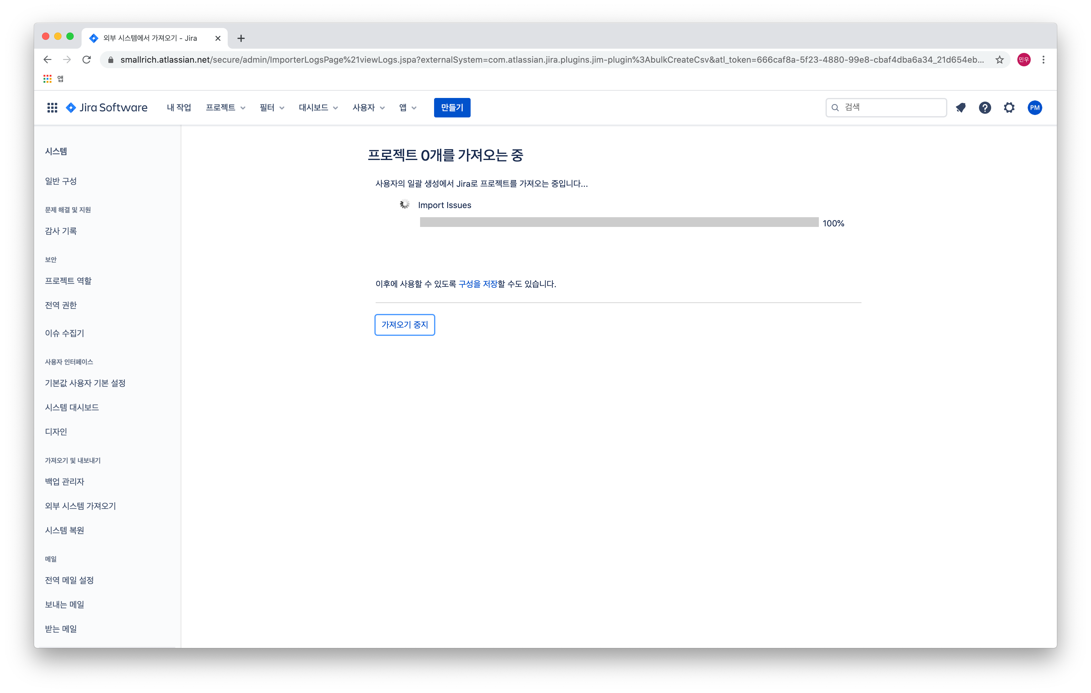 결국 구글에 검색 - "JIRA issue import" 합니다.