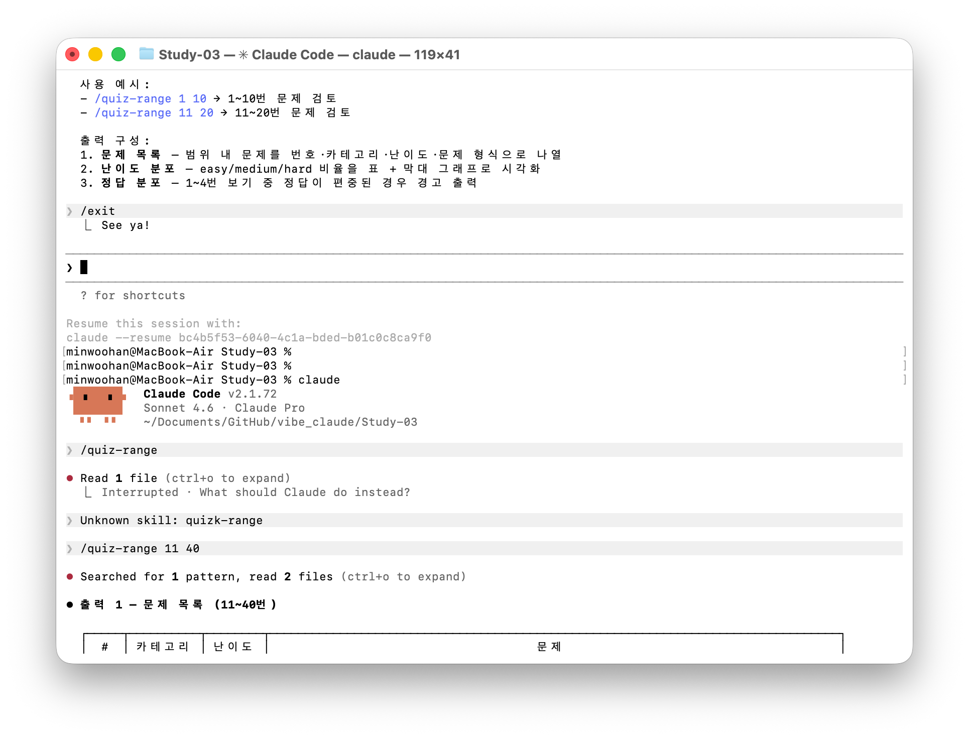 퀴즈 게임 관리, 개 귀찮음! Claude Code의 명령어 체인 으로 해결!지난 포스팅에서 만들었던 퀴즈 게임이든 무슨 서비스를 운영하다 보면 계속 누적되는 운영 업무를 어떻게 해결할지에 대한 고민이 생기게 됩니다. 특히 퀴즈 게임 같은 경우에 매일매일 새로운 문제 있는지 확인하고, 부족한 카테고리 채워 넣고, 중복 없는지 검사하는 업무가 생길 수 밖에 없는데요. 혼자서 공부하는 바이브코딩 책을 보면서 이런 운영 업무부터 해결을 해야겠다고 마음 먹고 있었는데요. Claude Code에 이러한 운영 업무를 해결 할 수 있는 기능이 있습니다. 바로 **명령어 체인(Command Chain)**입니다! 스크린샷처럼 처음 /quiz-range을 실행하면, 현재 퀴즈 DB의 문제 분포 현황(카테고리별, 난이도별..