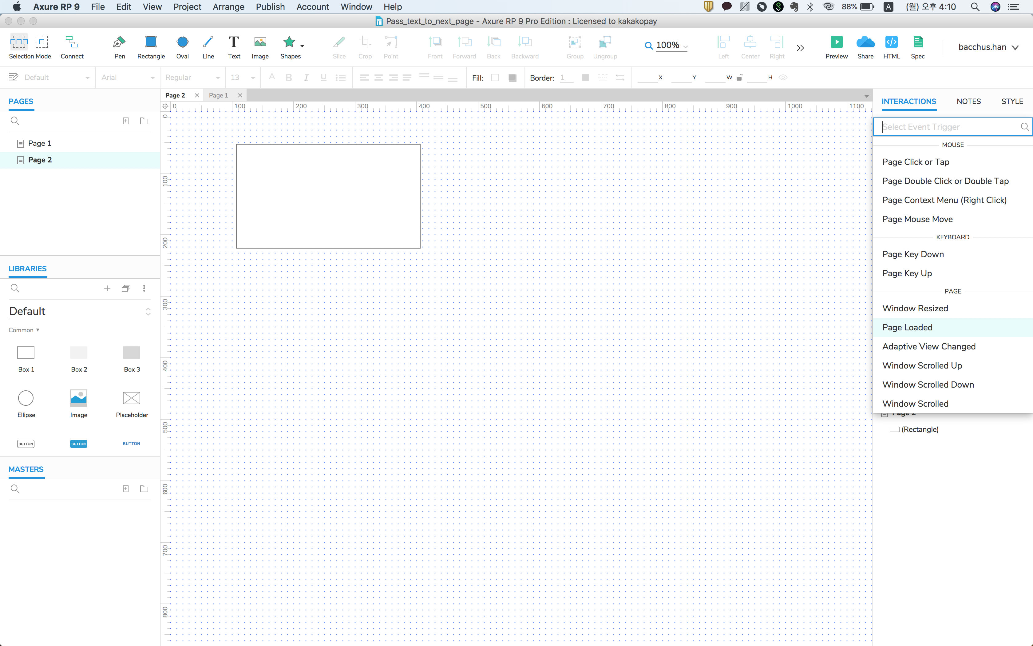 Page2에 Interactions를 설정합니다. Page Loaded를 선택합니다.