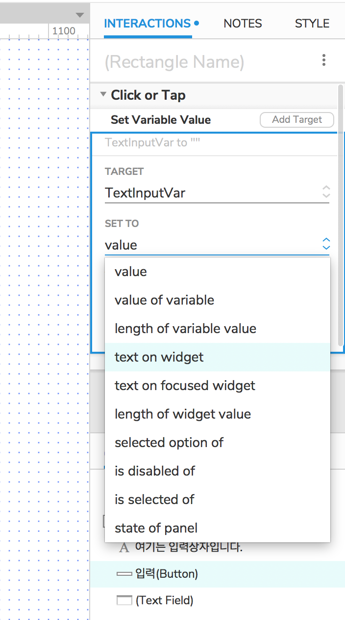 - 입력버튼(Button)에 Interactions 설정 - Set Variable Value