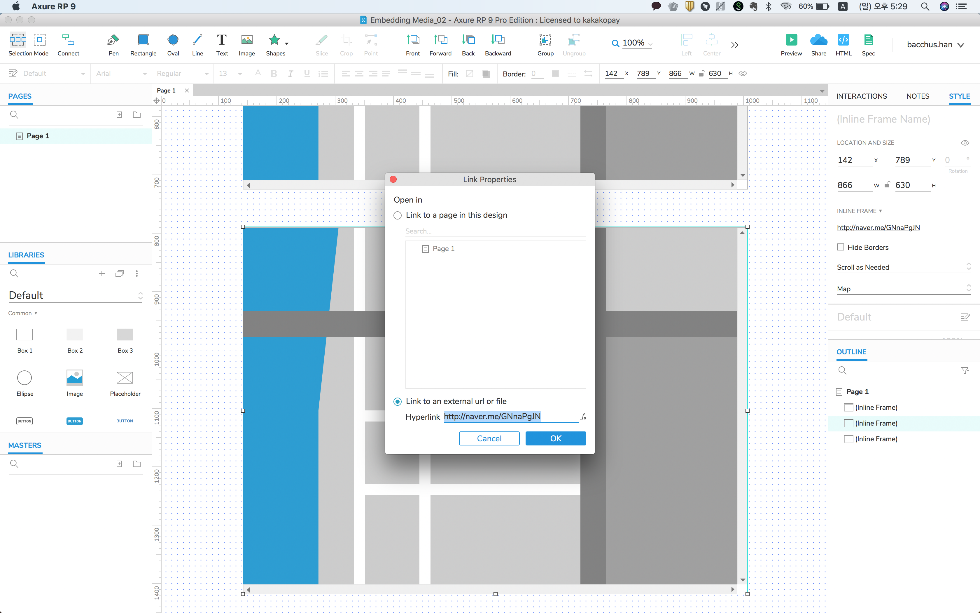 복사한 링크를 Axure Inline Frame에 적용합니다.