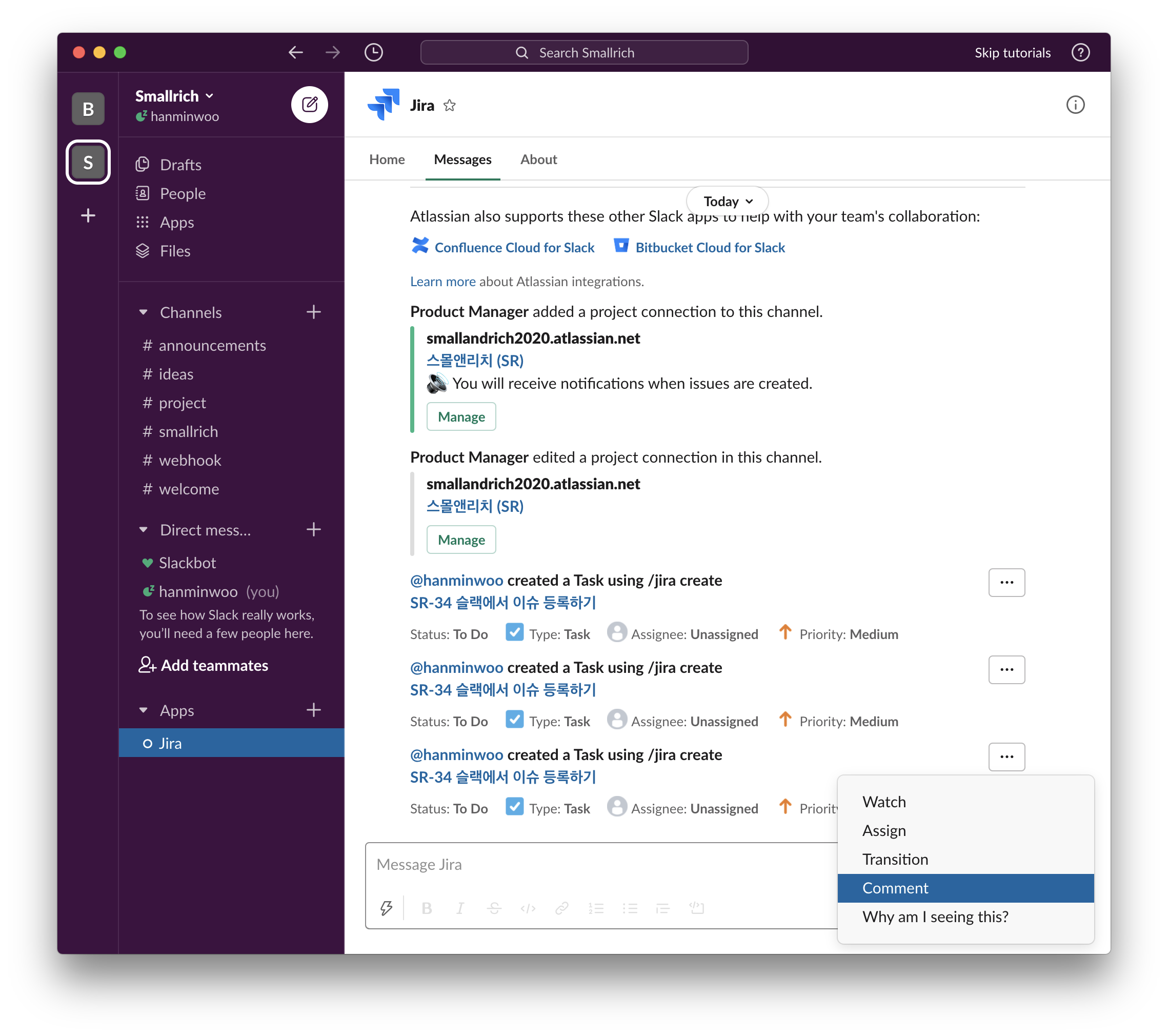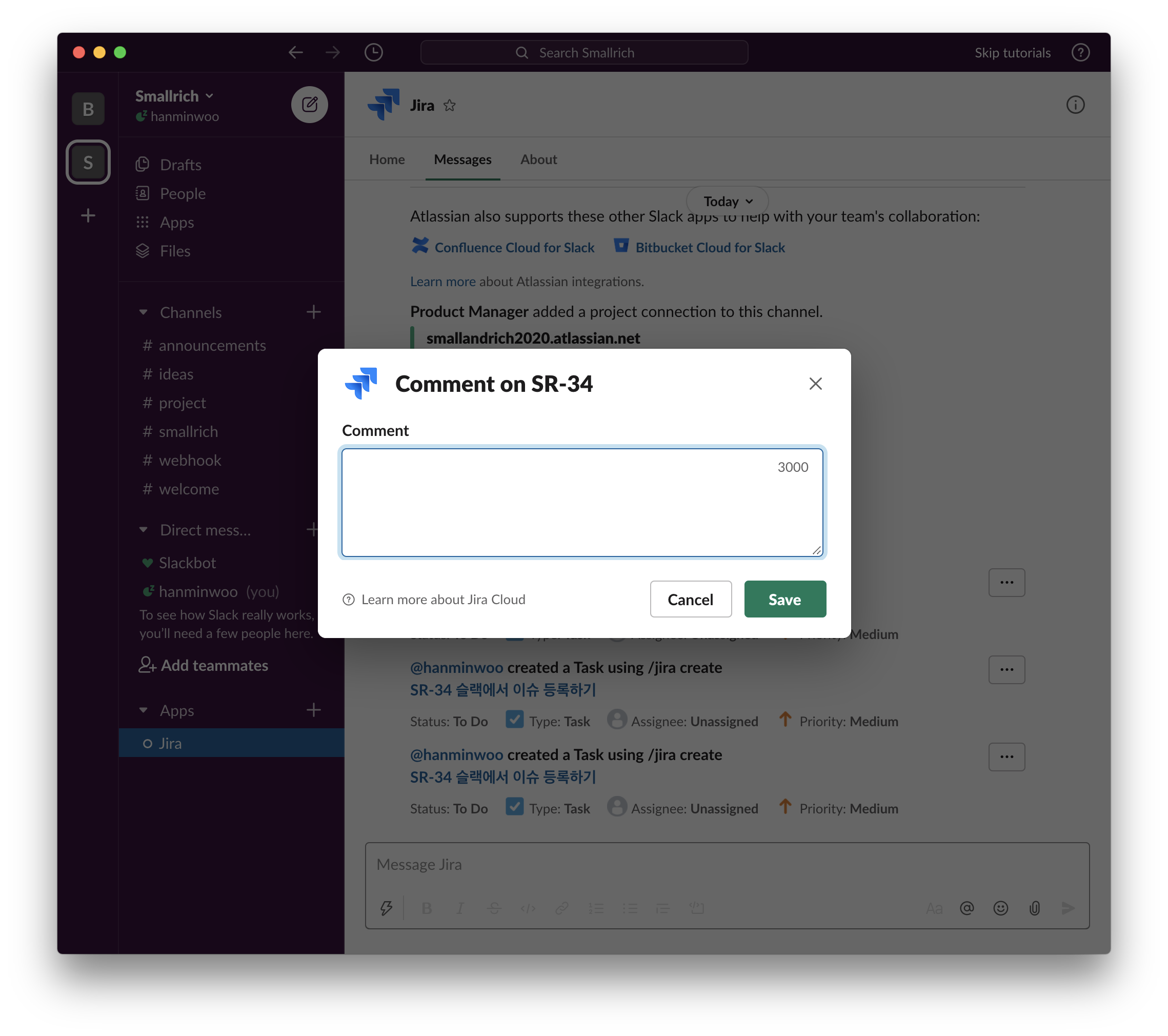 - 슬랙(Slack)에서 지라(JIRA) 이슈 코멘트 남기기