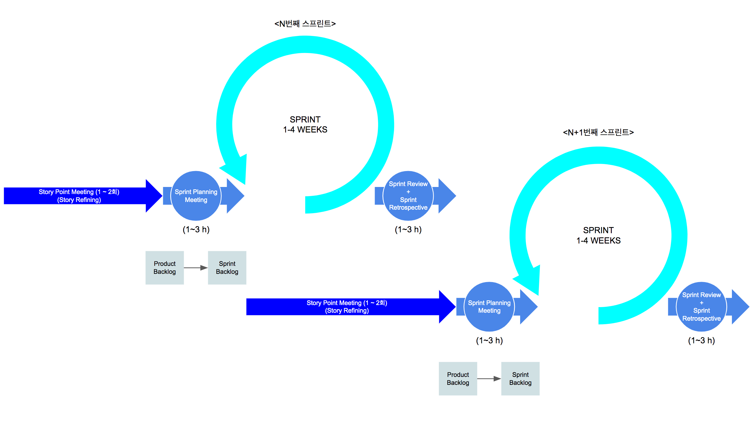 지난 포스팅 JIRA 처음 사용하기(2)에서 보드 필터를 셋팅하는 방법에 대해서 살펴보았습니다. 이번 포스팅에서는 다음 스프린트를 시작하고 기존 스프린트를 종료하는 방법, 이슈를 검색(스프린트 필터로)하는 방법을 살펴보려고 합니다. 사실 이 부분도 생각보다 되게 간단합니다. 몇 번 뚝딱 뚝딱 클릭해보면 금방 확인할 수 있는 방법들입니다. 스프린트 만들기 스프린트 완료하기 이슈 검색하기 1. 스프린트 만들기 기존에 진행 중인 프로젝트에서 "백로그" 메뉴로 이동합니다. "스프린트 만들기" 버튼을 클릭합니다. 프로젝트 + 스프린트2가 바로 생성되네요. 너무 쉽죠? ㅎㅎ 활성 스프린트 보드로 이동하여 기존에 등록된 이슈 중의 일부를 "완료"로 이동합니다. 스웜레인이 이슈의 상태(status)와 연결되어 있기 때..