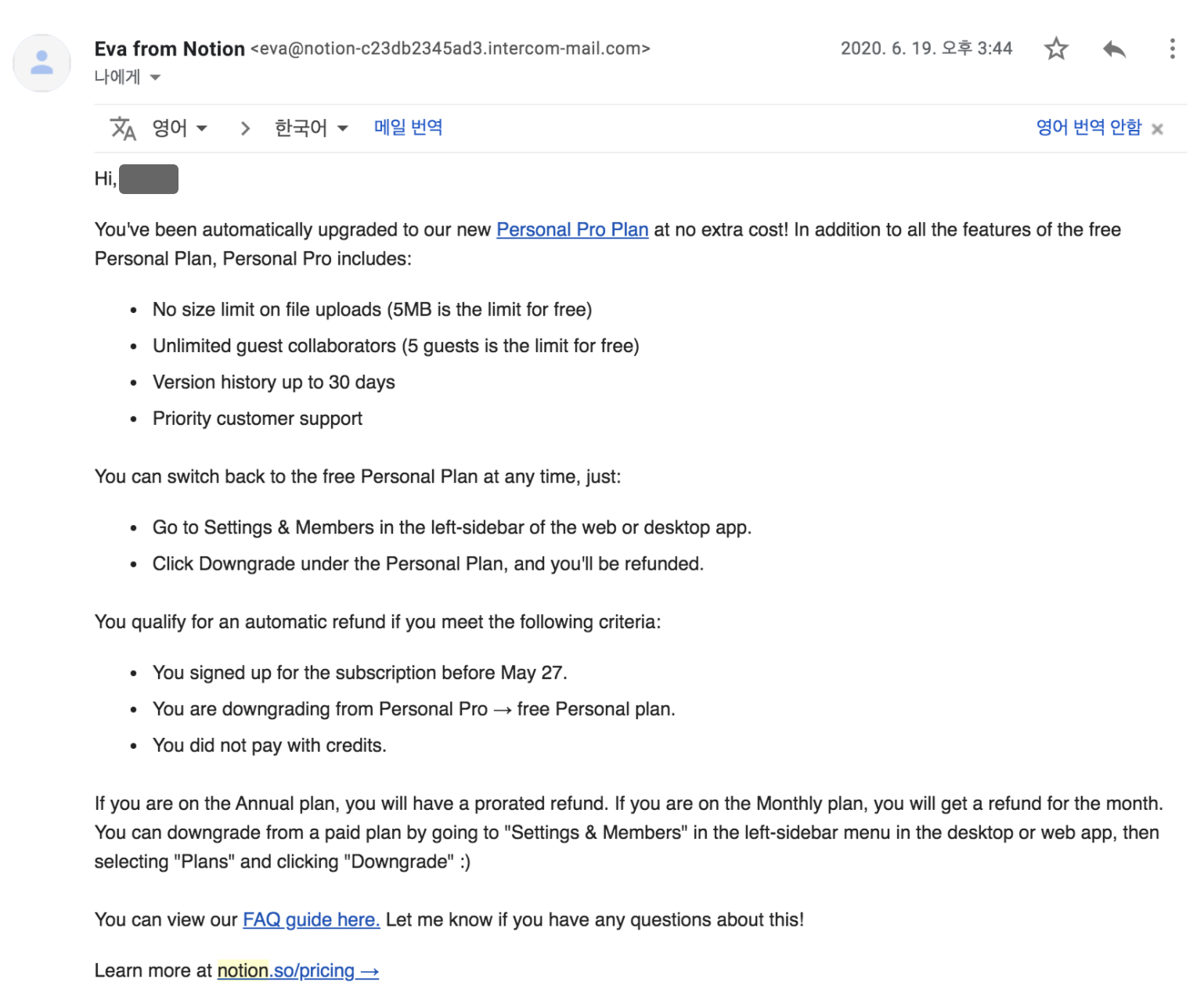 에버노트(Evernote) vs 노션(Notion) 혹시 업무관리 하실 때 어떤 도구를 사용하시나요? 요즘 주변에서 노션(Notion)을 많이 사용하시더라고요. 저도 올해 초부터는 노션으로 넘어갔는데요. 생각보다 너무 강력해서 대만족 중입니다. 그리고 특히 올 초에 노션에 감동한 적이 있었는데요. 최초 사용 후 무료로 사용할 수 있는 글의 수를 넘겨서 유료로 1년 구독 중이었거든요. 그런데 갑자기 개인용 무제한 무료 플랜이 등장했습니다. 여기에서 기존 유료 사용자는 Personal Pro(개인용인데 좀 더 좋은 플랜)로 구독 모델이 변경되었는데요. 여기에서 노션이 대단했던 점은 환불을 원하는 사람들에게 기존에 구독했던 플랜을 환불 받을 수 있도록 제공하였다는 점입니다. 사실 이 부분이 좀 감동이었던 것 ..